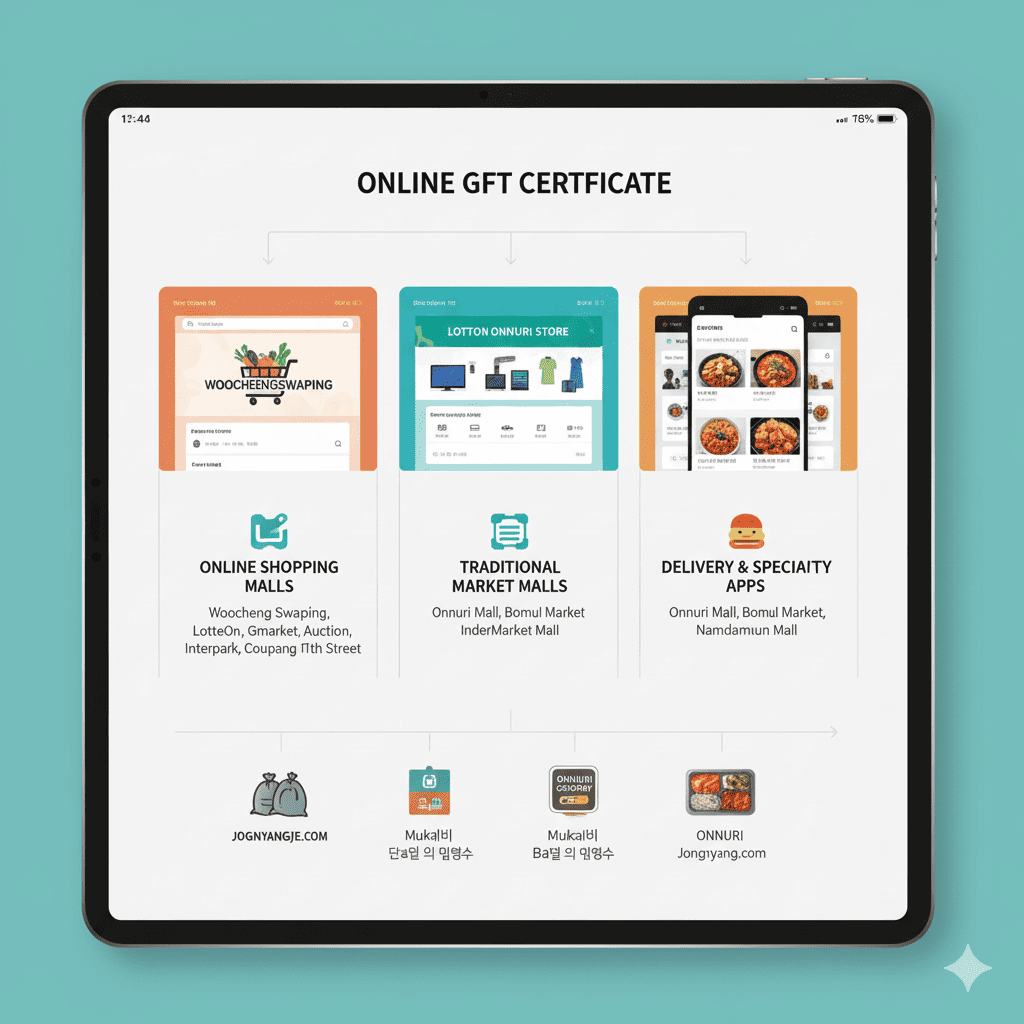 디지털 전환의 핵심은 온라인 사용처 확대입니다. 우체국쇼핑과 롯데ON 온누리스토어를 비롯해 G마켓, 옥션, 인터파크, 쿠팡, 11번가 등 주요 이커머스 플랫폼에서 전통시장 카테고리 상품 구매 시 사용할 수 있습니다.