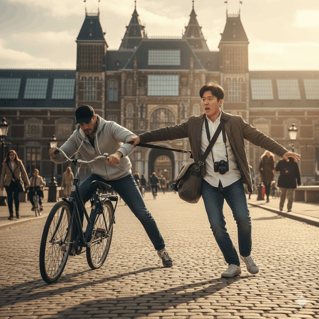 안네 프랑크 하우스(Anne Frank House), 암스테르담 국립미술관(Rijksmuseum), 반고흐 미술관(Van Gogh Museum) 주변에서 절도 사건이 빈번합니다. 자전거가 많은 암스테르담 특성상, 자전거를 타고 지나가면서 가방을 낚아채는 ‘스내치 앤 런(Snatch and Run)’ 수법도 있어요.